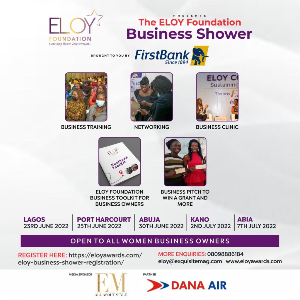The ELOY business Shower is an educative business gathering specifically organised for women in business to inspire and encourage them to build thriving businesses.
