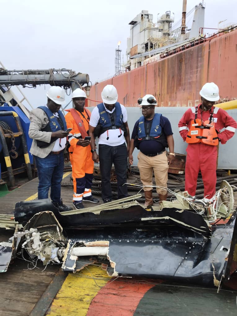 NIMASA in a press statement saud the recovery of the Flight Data Recorder FDR and Cockpit Voice Recorder CVR otherwise called the black box was over the weekend was through an inter-agency collaboration involving NIMASA, the Nigerian Navy, the Nigerian Safety Investigation Bureau (NSIB), the NNPC, HydroDive and other local and international search and rescue partners.