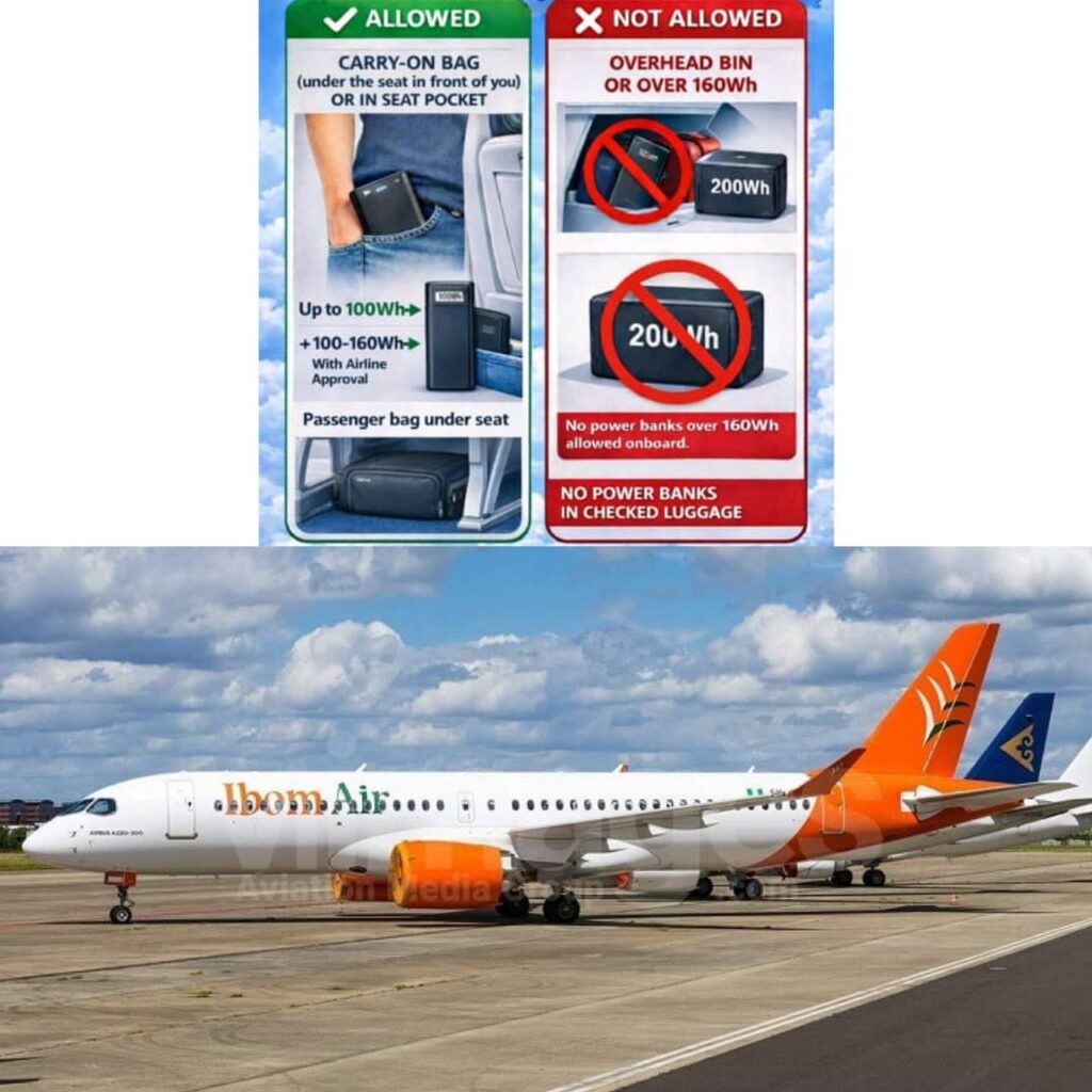 Ibom Air has implemented the latest safety directive issued by the Nigerian Civil Aviation Authority (NCAA) on the carriage and storage of power banks onboard commercial flights, reinforcing its commitment to passenger and crew safety.