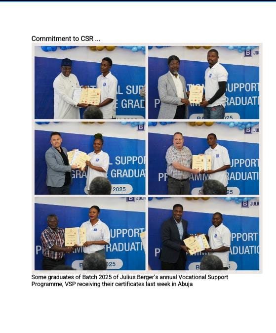 Julius Berger Nigeria Plc has reinforced its commitment to Corporate Social Responsibility (CSR) with the graduation of 36 trainees from its Batch 2025 Vocational Training Programme, equipping young Nigerians with critical technical skills for economic empowerment.