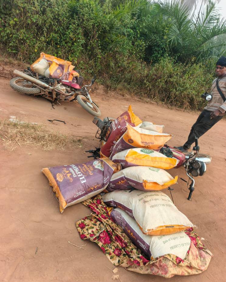 The latest incident occurred at about 6:00 a.m. on Saturday, January 31, 2026, along a bush path at Alapoti in Ado-Odo/Ota Local Government Area where Customs officers on routine patrol intercepted a convoy of motorcycles conveying smuggled foreign parboiled rice.