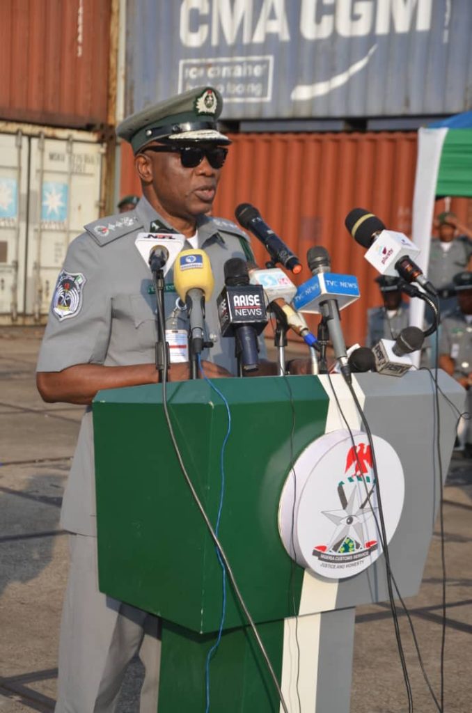 CGC Adeniyi delivering his speech at the recent seizure of illicit drugs at Onne Command.